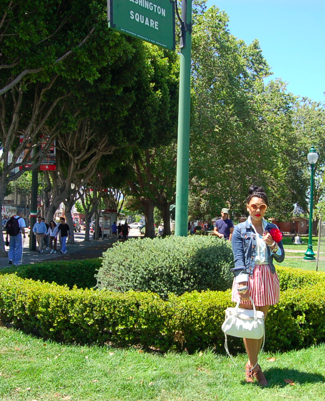 Who’s hungry? Come and get it! This outfit would be perfect for an all-american BBQ or an outdoor picnic.With all the outdoor events and weddings that may fill up your summer event calendar, be sure to choose sensible footwear to avoid sinking! These wedge booties served as the perfect shoe for a day in Washington Square Park!